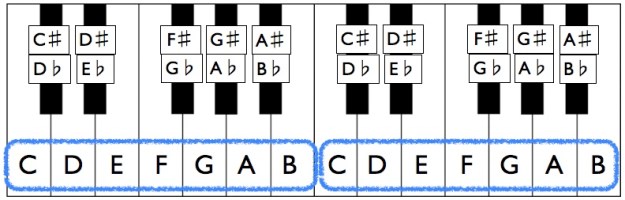 • In order to fix the spacing we need to use a black key… the F# to get the correct pattern back. E to F# is a whole step and F# to G is a half step…order is restored