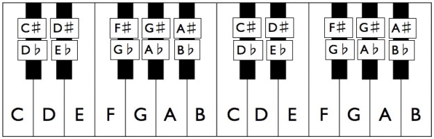 • Since the black notes have two names why did we use F# and not G♭ or C# and not D♭